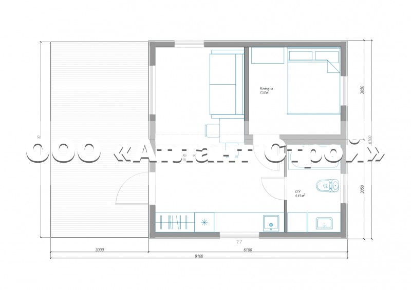 Дом, в котором всё продумано для комфортной жизни пары или небольшой семьи. С просторной террасы 18 м² вы попадаете в большую кухню гостиную 18,7 м². Здесь легко разместить полноценный кухонный гарнитур, обеденный стол и мягкую зону с диваном — это главное место для встреч, отдыха и вечеров с друзьями. Большие окна наполняют помещение светом и визуально расширяют пространство. Уютная отдельная спальня 7,6 м² уверенно вмещает двуспальную кровать и систему хранения — личная зона, куда никто не заглядывает. Полноценный санузел 4,4 м² с ванной, раковиной и туалетом делает дом полностью готовым к постоянному проживанию. Компактный размер, грамотная планировка и большая терраса создают ощущение современного загородного жилья, в которое хочется возвращаться каждый день.